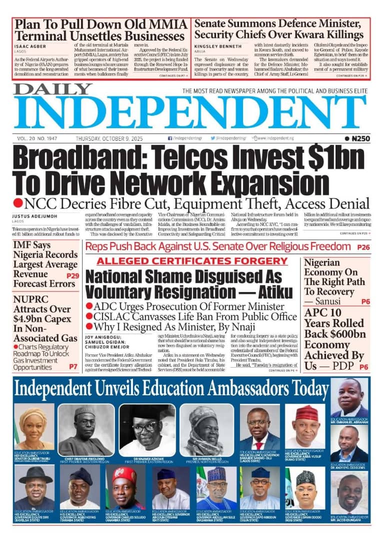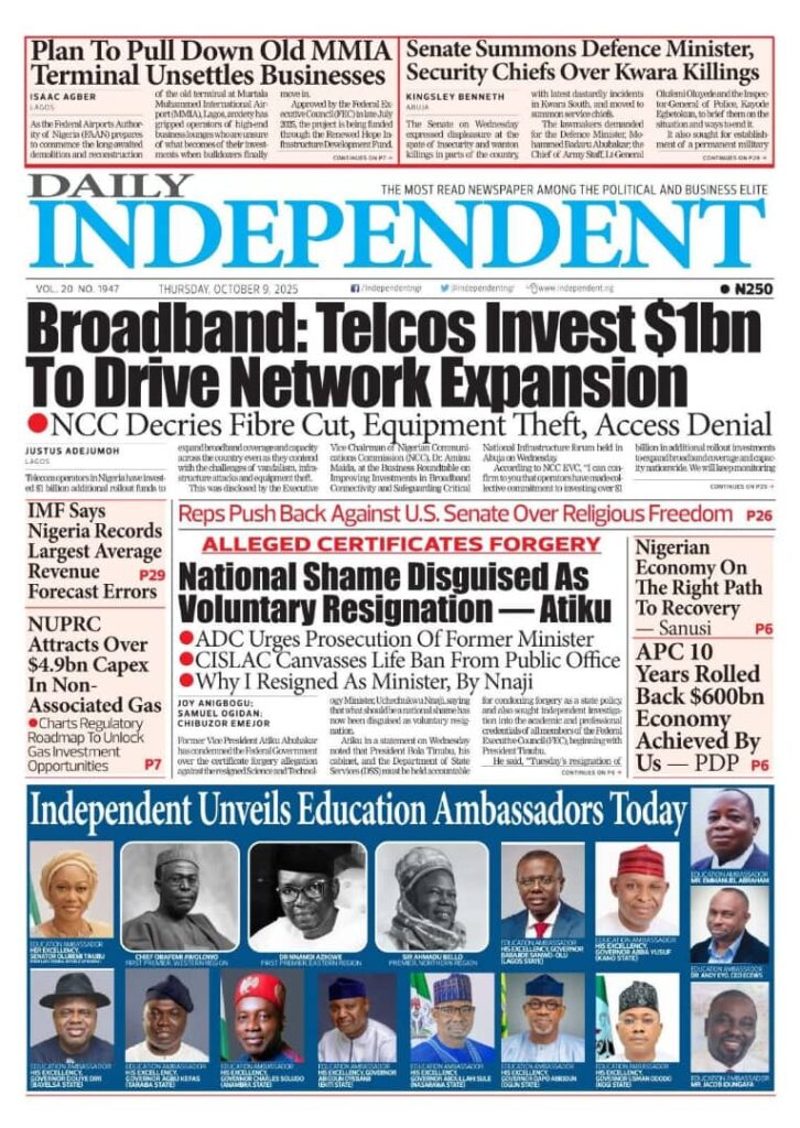 The governor, who featured on the cover of Daily Independent Newspaper, was unveiled among sixteen distinguished Nigerians named as Education Ambassadors in recognition of their roles in advancing education and national development.